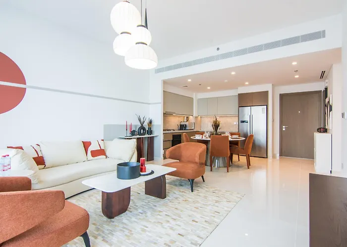 Das 2-Zimmer-Apartment ist im Stadtviertel Palm Jumeirah gelegen. The Torch befindet sich etwa 25 Gehminuten entfernt.